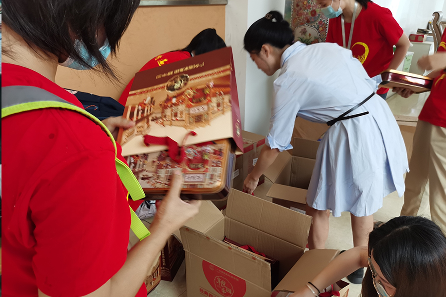 長視志愿者為服務(wù)對象現(xiàn)場分發(fā)微心愿物資。值此中秋佳節(jié)即將到來,我們也精心為各服務(wù)對象準(zhǔn)備了一份月餅,提前祝愿大家幸福安康。
