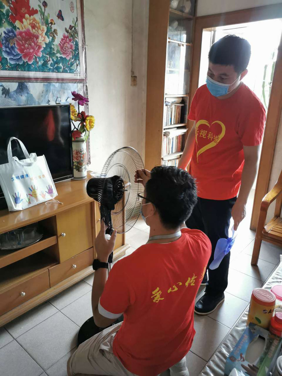 我們的小伙伴在現(xiàn)場給服務(wù)對象安裝受贈物資。
