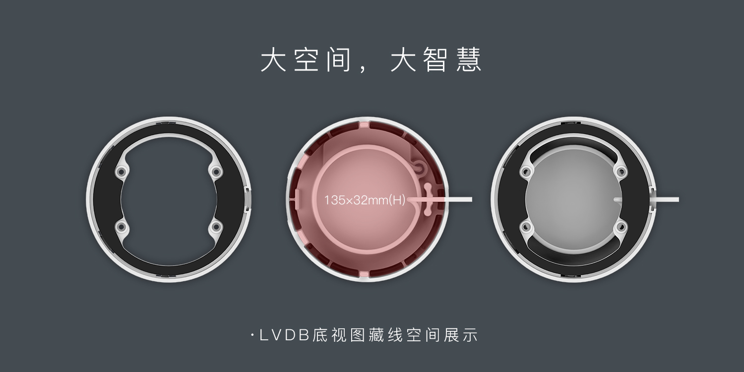 藝術(shù)與體驗(yàn)的融合,方可彰顯優(yōu)異的工匠精神。在LVDB監(jiān)控新外殼的設(shè)計(jì)中,底座的加高,能為線材提供135*32mm(H)的空間,藏于底座之下,美觀掌控,心有所動(dòng)。此外,線材外露的減少,還能減少與水的接觸機(jī)會(huì),增強(qiáng)其使用中帶來(lái)的安全性。